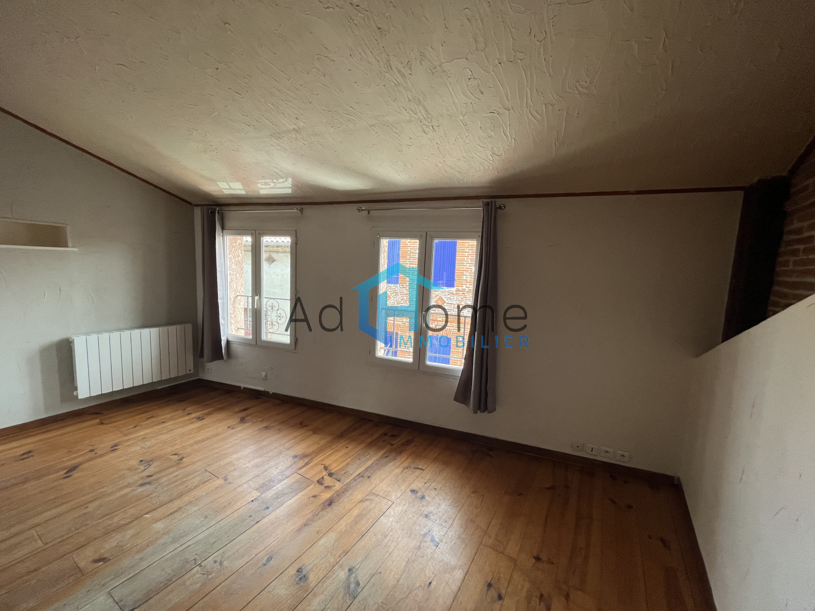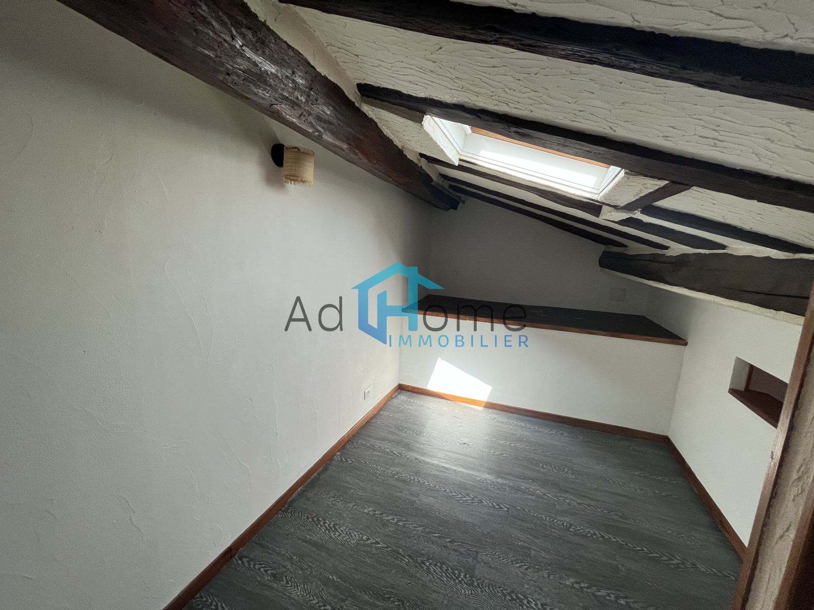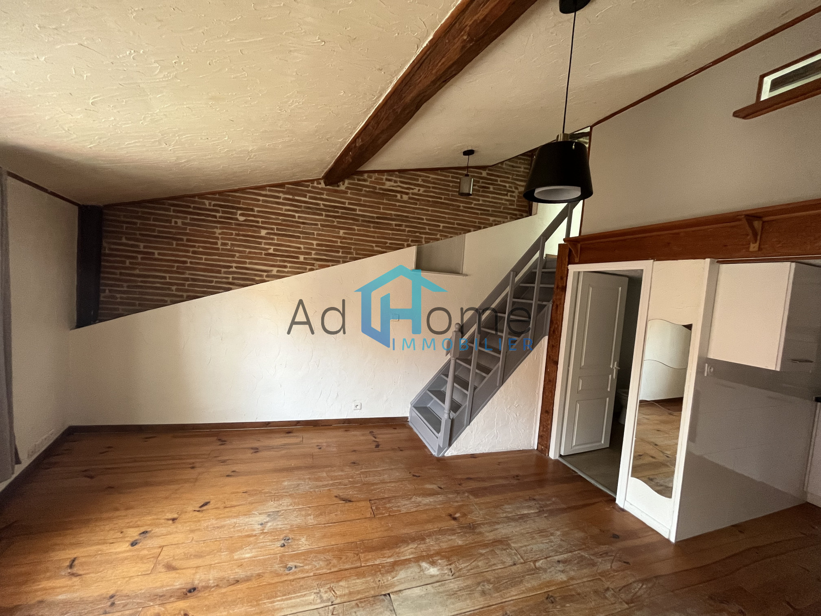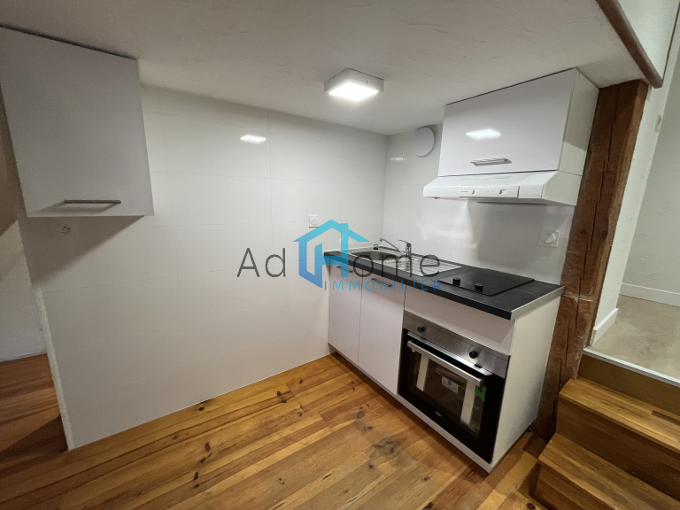 A St Lys, plein coeur de village, T1 bis au premier et dernier étage d'un petit collectif se composant d'une entrée ouverte sur l'espace séjour/cuisine équipée (meubles, plaque, hotte, four et frigo américain) ; salle d'eau avec WC + mezzanine formant l'espace nuit.