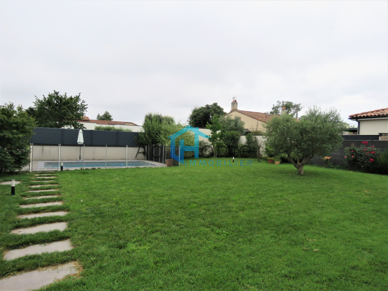 Rare, dans quartier calme, proche du Lycée international et du Centre-Ville, Maison moderne récente (2017) d'env. 123m² hab, très lumineuse, bénéficiant de nombreux aménénagements de qualité, des rangements très astucieux, et dotée au rez-de-chaussée d'un espace de vie avoisinant les 50 m² dont une cuisine ouverte équipée (meubles et électroménager, table de cuisson à induction, hotte, four traditionnel, four micro-ondes) avec cellier-buanderie attenant, une suite parentale avec dressing entièrement équipé et salle d'eau privative. A l'étage, 3 autres chambres avec placard (de 12.50 à 14 m²), une grande salle de bains et 2° wc séparé. Garage attenant et aire de sationnement pour plusieurs véhicules. Superficie totale du terrain : 740 m². Agréable jardin arboré avec arrosage intégré programmable, terrasse, pergola bioclimatique, piscine sécurisée 6x3. Autres équipements : interphone-visiophone, portail motorisé, volets roulants électriques avec store intégré au niveau du séjour, pompe à chaleur (chauffage par le sol au rdc et radiateurs à l'étage), fibre.