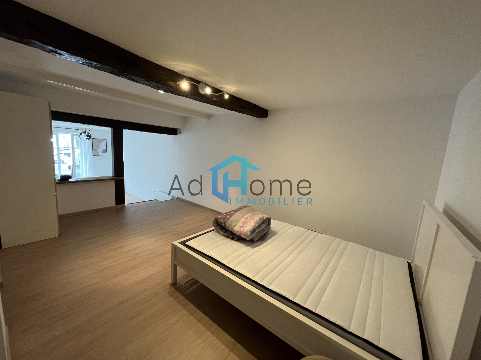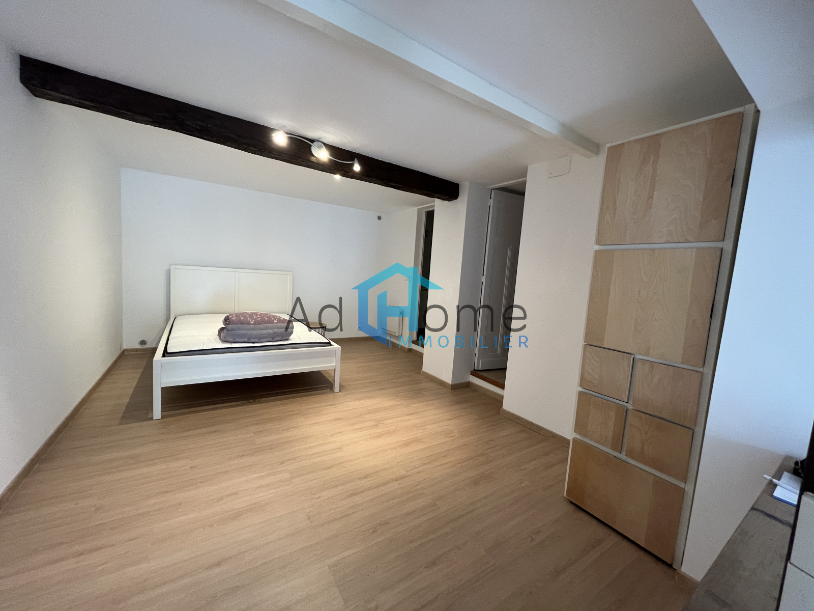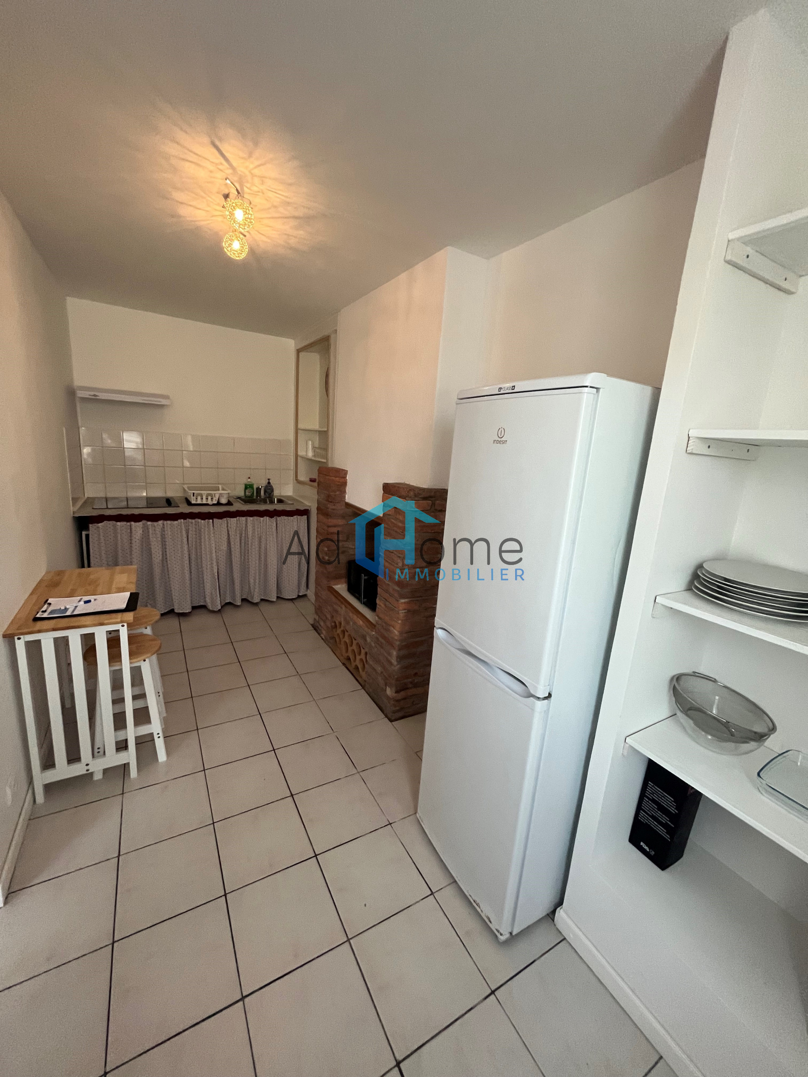 Rieumes (31370)Plein coeur du village de Rieumes, appartement de 45m² habitable "meublé" se composant d'un espace séjour donnant accès à une cuisine équipée (rangements, plaque de cuisson, hotte aspirante, réfrigérateur, table à manger et ustensiles de cuisine) ; ainsi qu'à un coin chambre avec un lit 2 personnes et une armoire, cellier-buanderie et salle d'eau avec WC.