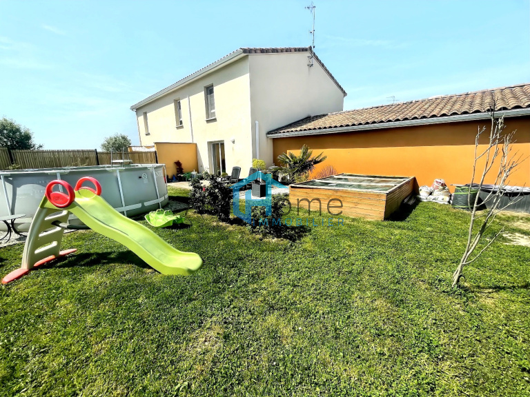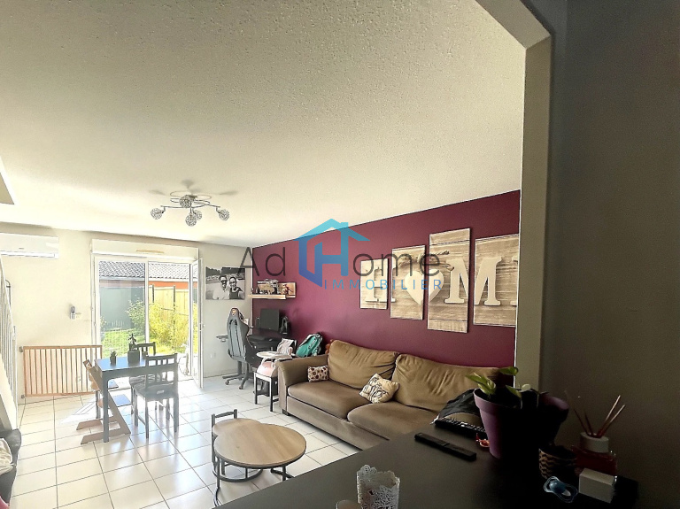 Proche Ecoles, Bus, commerces, Villa T3 Duplex avec garage et jardin attenants, comprenant, en partie RdC, un dégagement avec placard, cuisine semi-ouverte aménagée, séjour exposition Sud, ouvrant sur terrasse bois et jardin, à l'étage, 2 chambres de + de 12 m² avec placard, salle de bains et wc séparé. Garage attenant avec rochelle de rangement. Equipements : pompe à chaleur AIR/AIR réversible (2023), ballon d'eau chaude de 200 L neuf (2025), ouvrants PVC double vitrage, volets roulants manuels. Bien situé dans une copropriété de 243 lots principaux.