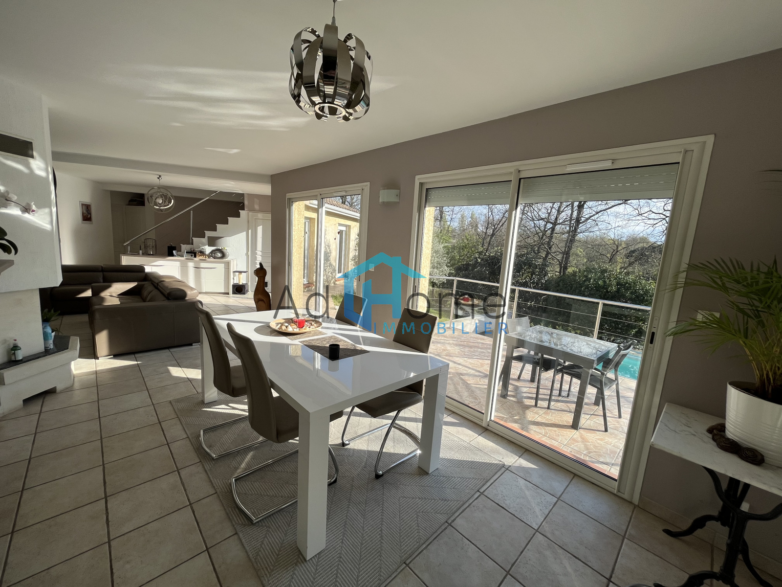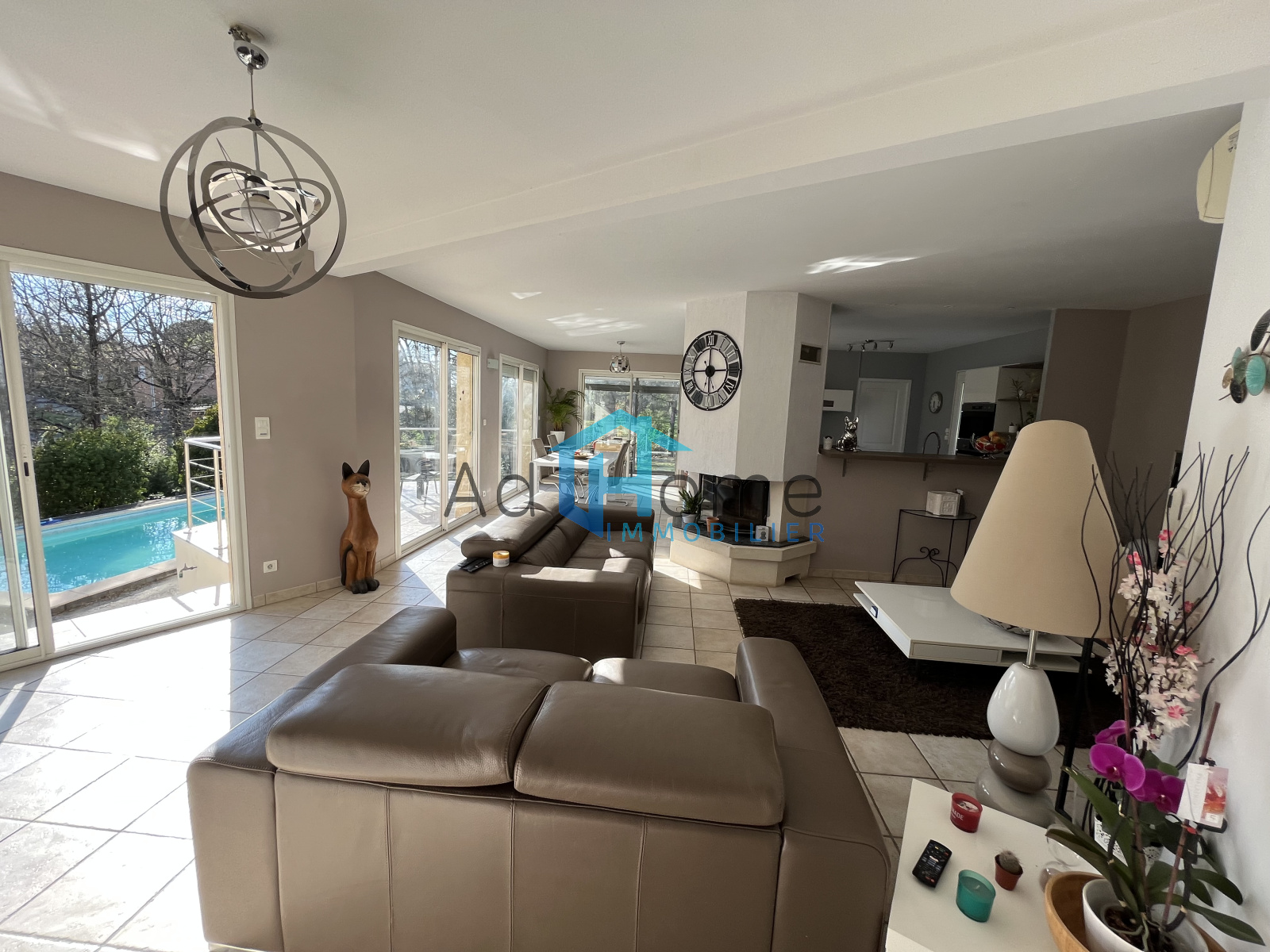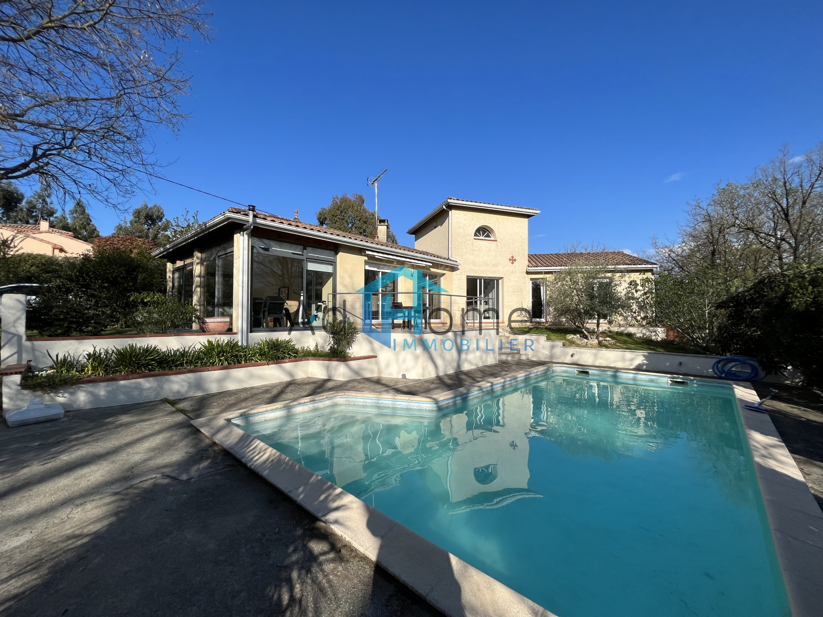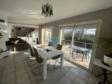 Dans impasse privée, sur très beau terrain boisé d'env 2500 m², très jolie villa d'architecture contemporaine d'env 137 m² hab, composée de 3 chambres dont 2 en rdc + un bureau, 2 salles d'eau, un très bel espace jour d'env 45 m² surplombant la piscine et offrant une superbe vue sur la partie boisée du jardin exposé Sud-Est, complétée par une véranda de 18 m², la cuisine semi-ouverte est entièrement équipée avec un cellier-laverie attenant, enfin, un sous-sol d'env 70 m² accueille le garage (env 50 m²), une pièce de rangement et la machinerie de la piscine. Le terrain, entièrement clos avec portail motorisé, est aménagé en aire de stationnement pouvant accueillir 4 à 5 véhicules, coin potager avec un châlet abri de jardin, verger et bois. Idéal pour se ressourcer !