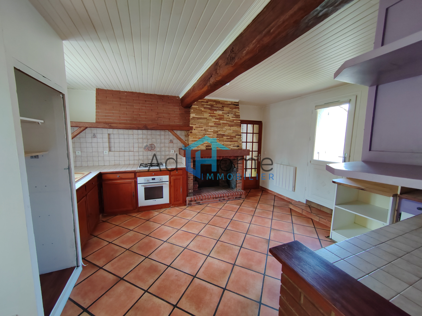 Le rez-de-chaussée se compose d'une entrée desservant une pièce de vie équipée d'une cheminée avec insert, une cuisine séparée avec accès sur un patio intimiste. 3 chambres complètent ce bien avec une salle d'eau et des WC séparés.