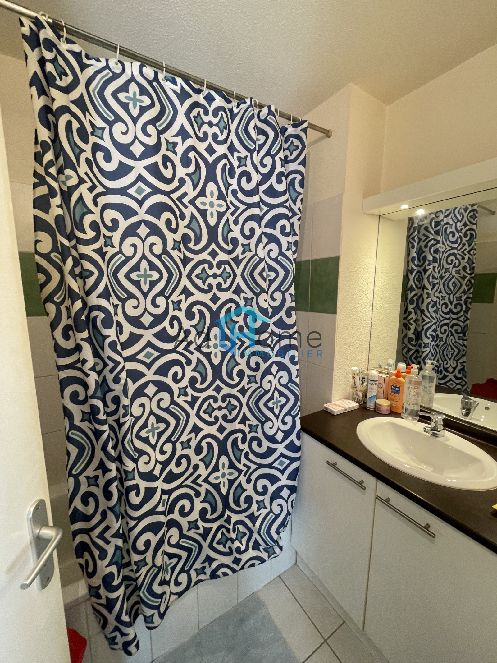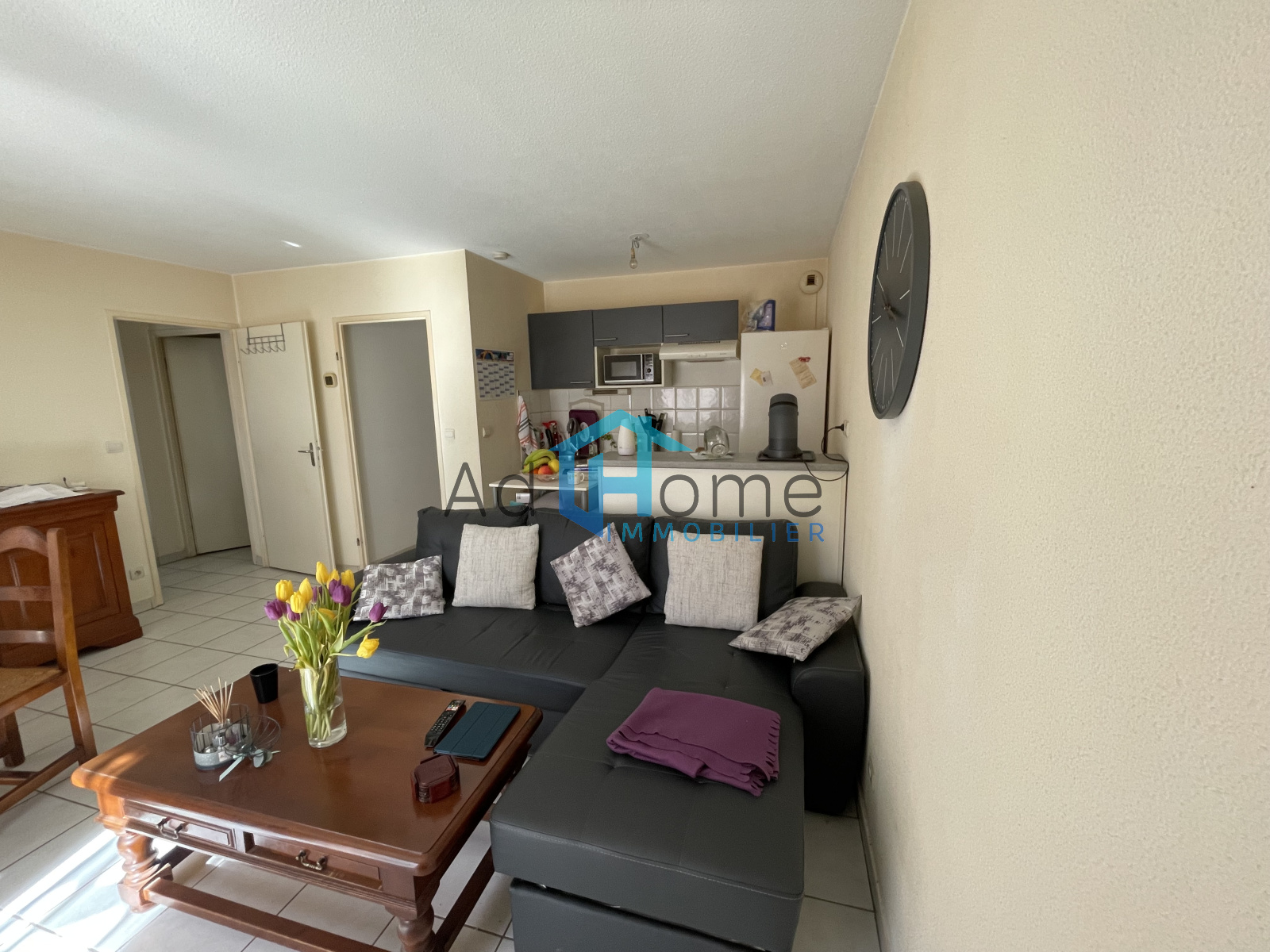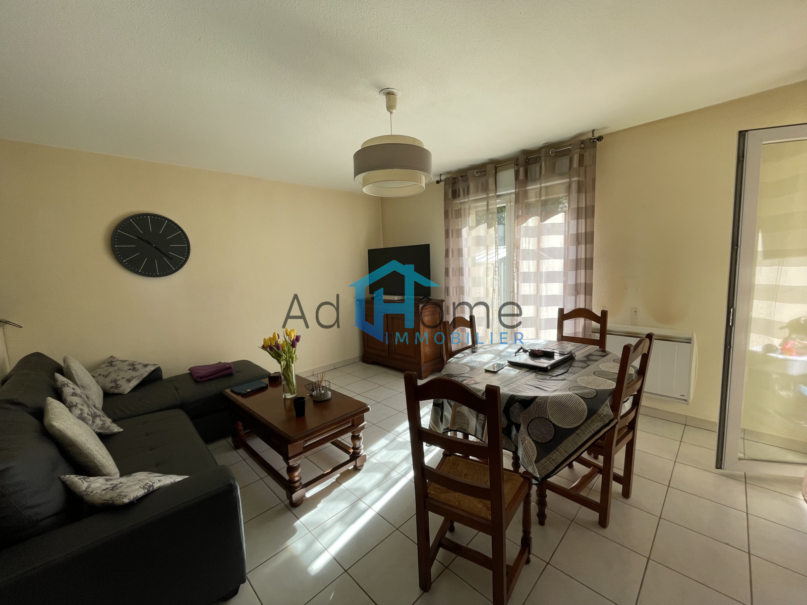 Copropriété sécurisée très prisée, avec piscine, à 2 pas du coeur de Village, dans petit bâtiment de 1 étage composé de 2 niveaux de 6 appartements, agréable 2 pièces d'env 43 m² composé d'un hall d'entrée avec wc, pièce de vie d'env 25 m² dont cuisine ouverte aménagée, ouvrant sur une terrasse et un jardin privatif, une chambre séparée avec placard, salle de bains. 2 emplacements de parking aérien. Local à vélo commun. (consommation d'eau incluse dans les charges). Vendu loué : 450.61 € + 50 € de provisions pour charges (bail renouvelé depuis le 17/02/2024).