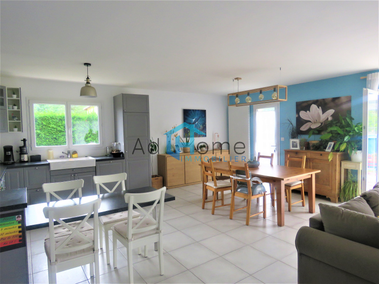 A env 5 min du coeur de Village de St-Lys, agréable maison de 2017, RT 2012, de plain-pied, env 100 m² hab, offrant un espace de vie de près de 50 m², dont une cuisine ouverte entièrement équipée (électroménager complet), bénéficiant d'une exposition Sud-Est et donnant accès à 60 m² de terrasse, la partie nuit accueille 3 belles chambres avec placard aménagé, une très grande salle de bains (+ de 8 m²) où vous pourrez prendre douches ou bains, des toilettes séparées et enfin, un garage attenant de 17 m² avec coin buanderie, pouvant être aménagé en suite parentale par exemple, sans oublier une grande aire de stationnement qui vous permettra de garer 4 voir 5 véhicules . Le chauffage et la production d'eau chaude sanitaire sont assurés par une pompe à chaleur Air/Eau qui participe à rendre cette maison particulièrement économe (consommation énergétique annuelle : env 1000 euros) . Arrêt de bus scolaire à côté de la maison. Il ne vous reste qu'à la visiter !