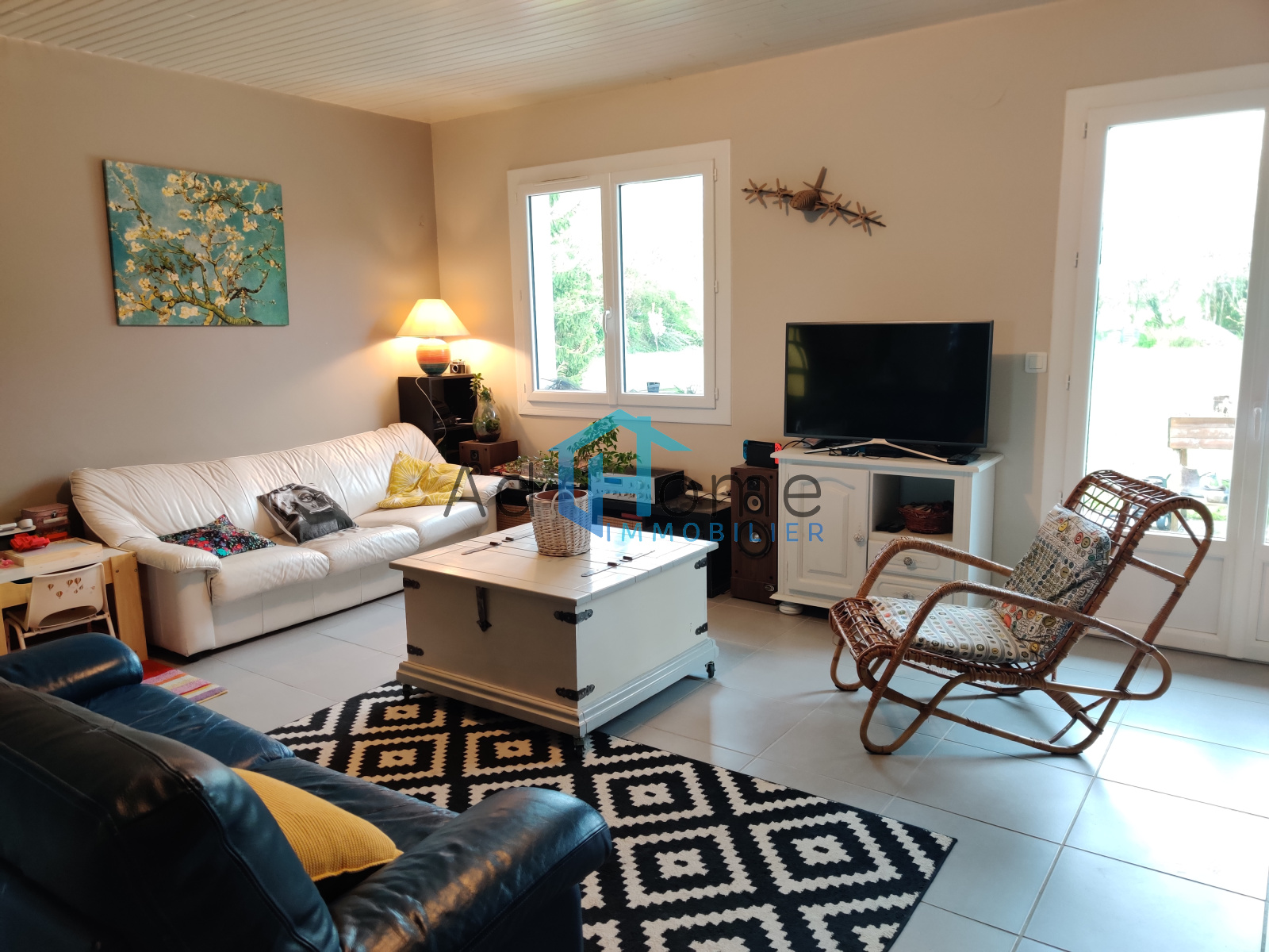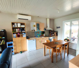 Le bien se compose d'une entrée donnant sur une lumineuse et agréable pièce de vie climatisée et exposée plein sud, ouvrant sur la terrasse et son jardin, cuisine ouverte et semi-aménagée. La partie nuit comprend trois chambres (9 m², 12 m² et 12 m²) , une salle d’eau (double vasque et douche à l'italienne) et WC séparé. Garage attenant, le tout établi sur une parcelle de 2165 m².