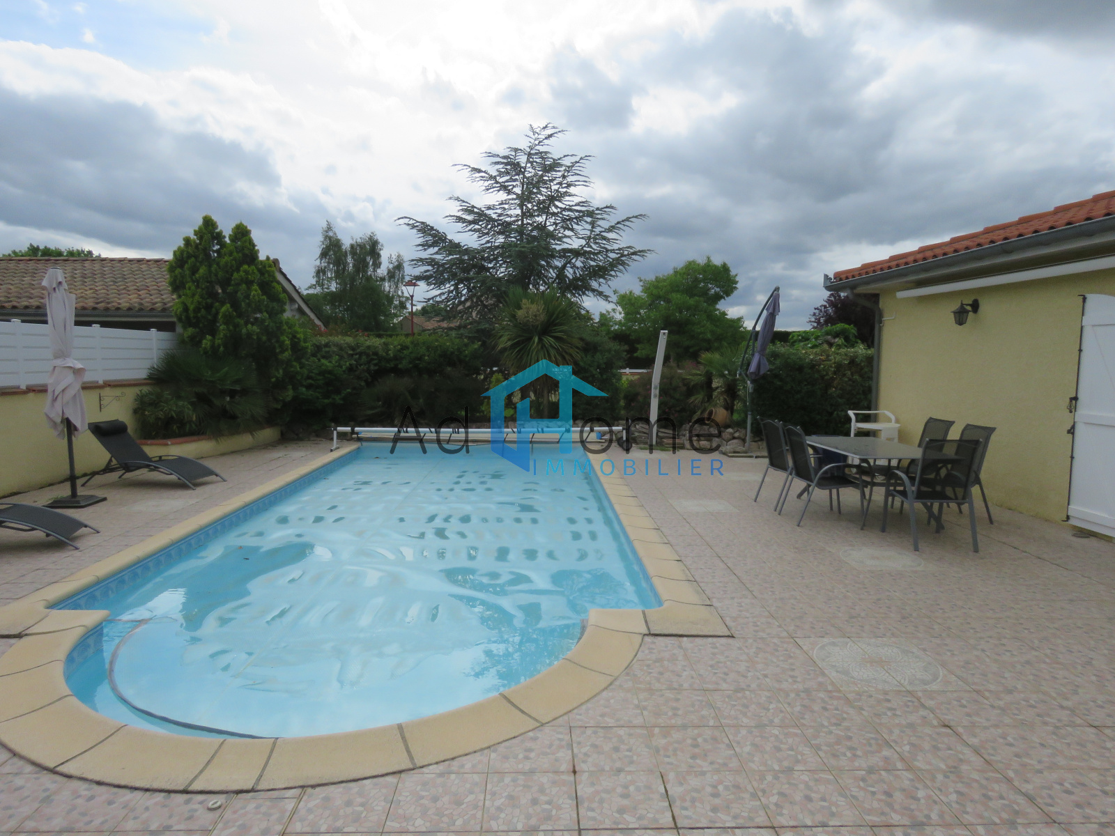 L'Agence Ad Home Immobilier a le plaisir de vous présenter, EN EXCLUSIVITE, ce bien râre, dans impasse au calme, coeur de Village accessible à pieds, jolie villa construite en 1992, très bien entretenue, bénéficiant d'une excellente isolation (DPE classe B) composée d'une entrée, séjour salon avec cheminée-insert accès terrasse et piscine (8x4 prof de 1 m à 1.70 m, liner en cours de remplacement), cuisine récente entièrement équipée, cellier-chaufferie attenant, dégagement nuit avec placard, 3 chambres, salle d'eau (douche à l'italienne), 4° chambre avec 2° salle d'eau et wc, rangements, garage récent (2021) env 24 m² avec porte sectionnelle motorisée et abri voiture (env 20 m²). Le tout sur une parcelle de 1051 m² entièrement clôturé, portail motorisé, superbe jardin arboré, nombreux massifs. Chauffage central au gaz, climatisation réversible parties jour et nuit (2019), double vitrage à isolation renforcée (2015), isolation toiture refaite en 2021 (33 cms laine minérale soufflée). Communes voisines : 31470 FONSORBES, 31490 LEGUEVIN, 31880 LA SALVETAT ST GILLES, 31470 ST-LYS, 31830 PLAISANCE.