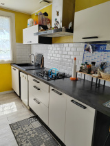 Une cuisine équipée et un hall d'entrée viennent compléter l'espace de vie.