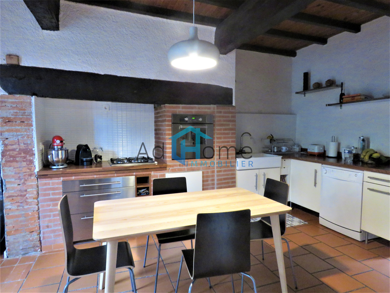 Sainte-Foy-de-Peyrolières (31470)Râre, à 2 pas du coeur de Village de Ste Foy de Peyrolières, au calme, Jolie Maison ancienne rénovée, aménagée avec soin, pleine de charme et beaucoup de cachet : poutres apparentes, planchers d'origine, offrant de grandes pièces, un séjour-salon familial avec cheminée avec insert, donnant accès à une rochelle (mur en briques foraines anciennes), un salon plus intime, une cuisine de + de 20 m² donnant directement accès à une belle terrasse bois coté jardin, plein Sud, à l'étage, 3 belles chambres dont 2 de + de 20 m², ainsi qu'une salle d'eau actuelle (douche à l'italienne). Côté fonctionnalité, cette maison dispose de nombreux rangements, une grande buanderie, ainsi qu'un garage attenant . Terrain entièrement clos, d'env 500 m² arboré, sans vis-à-vis et bénéficiant d'un ensoleillement maximum. Coup de coeur assuré !